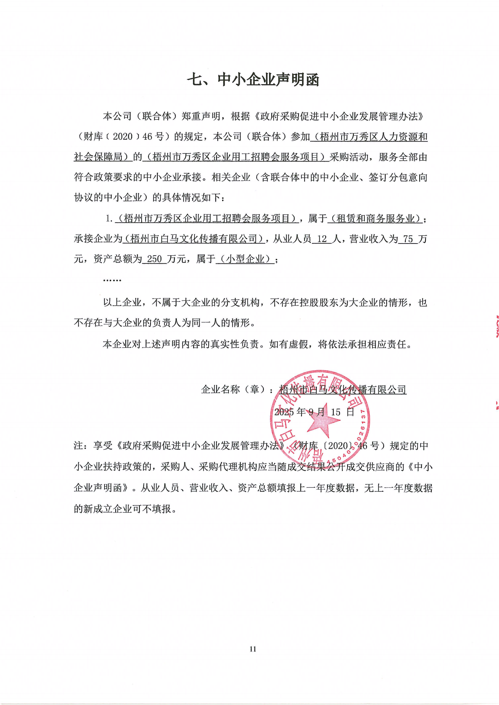 二、项目名称:梧州市万秀区企业用工招聘会服务项目