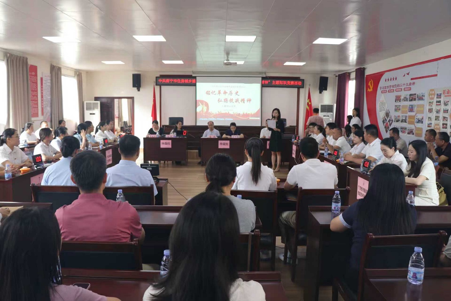 本次知识竞赛,意在引导全体党员深入学习抗日战争和世界反法西斯战争的壮阔历史,深刻理解其伟大意义。8月28日上午,知识竞赛在市住建行业党委副书记陈琳同志的致辞中热烈开展。10支参赛队伍由市住建行业党委所属各个两新党组织组成,各队势均力敌,竞争非常激烈。